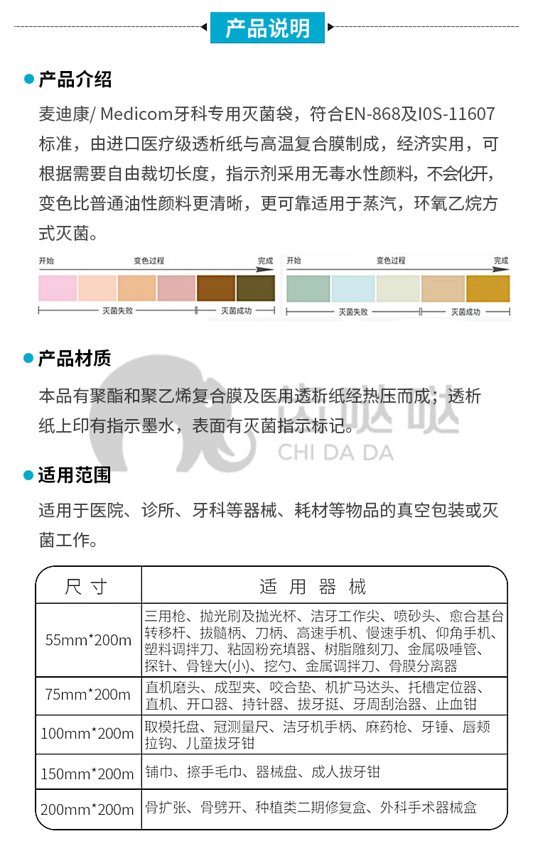麦迪康 灭菌卷袋 牙科专用