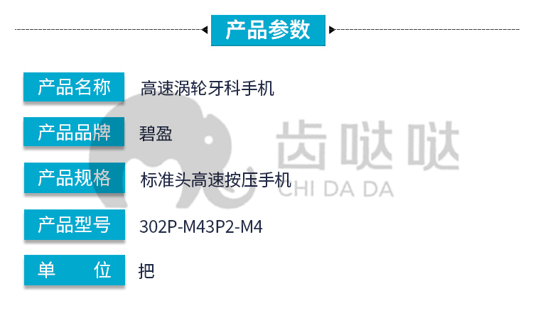 碧盈 高速涡轮牙科手机/标准头高速按压手机(三点喷雾)