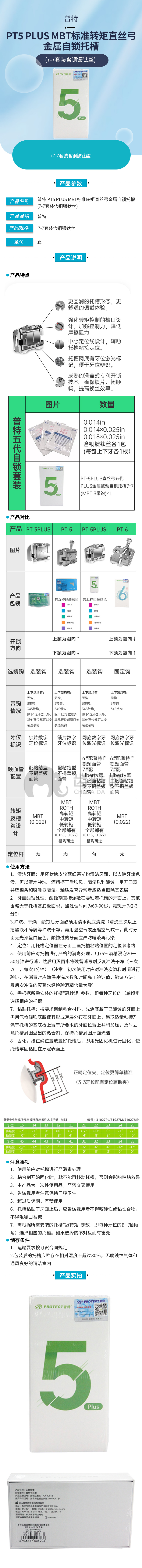 普特 PT5 PLUS MBT标准转矩直丝弓金属自锁托槽(7-7套装含铜镊钛丝)