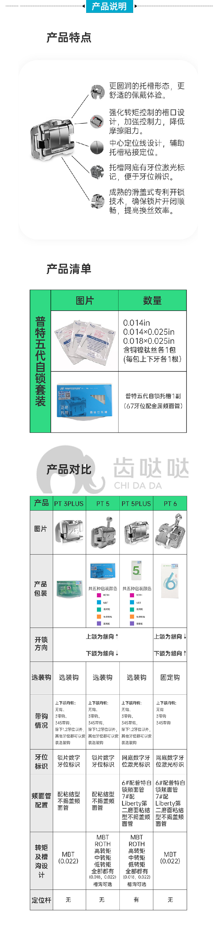 普特 PT5 PLUS金属自锁托槽(含热激活丝)