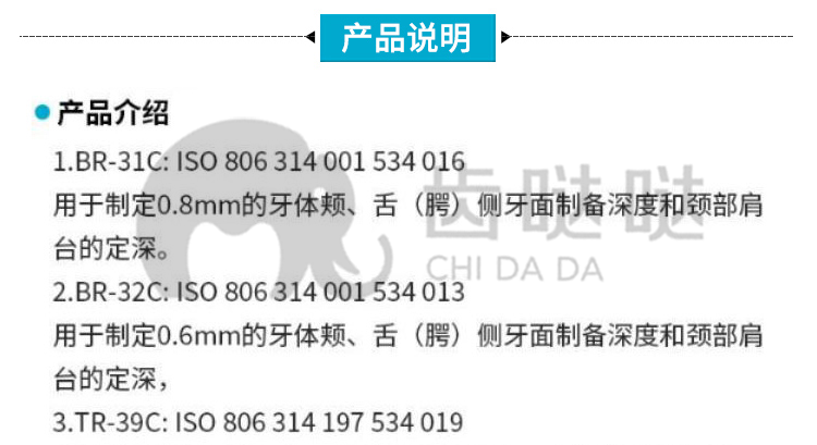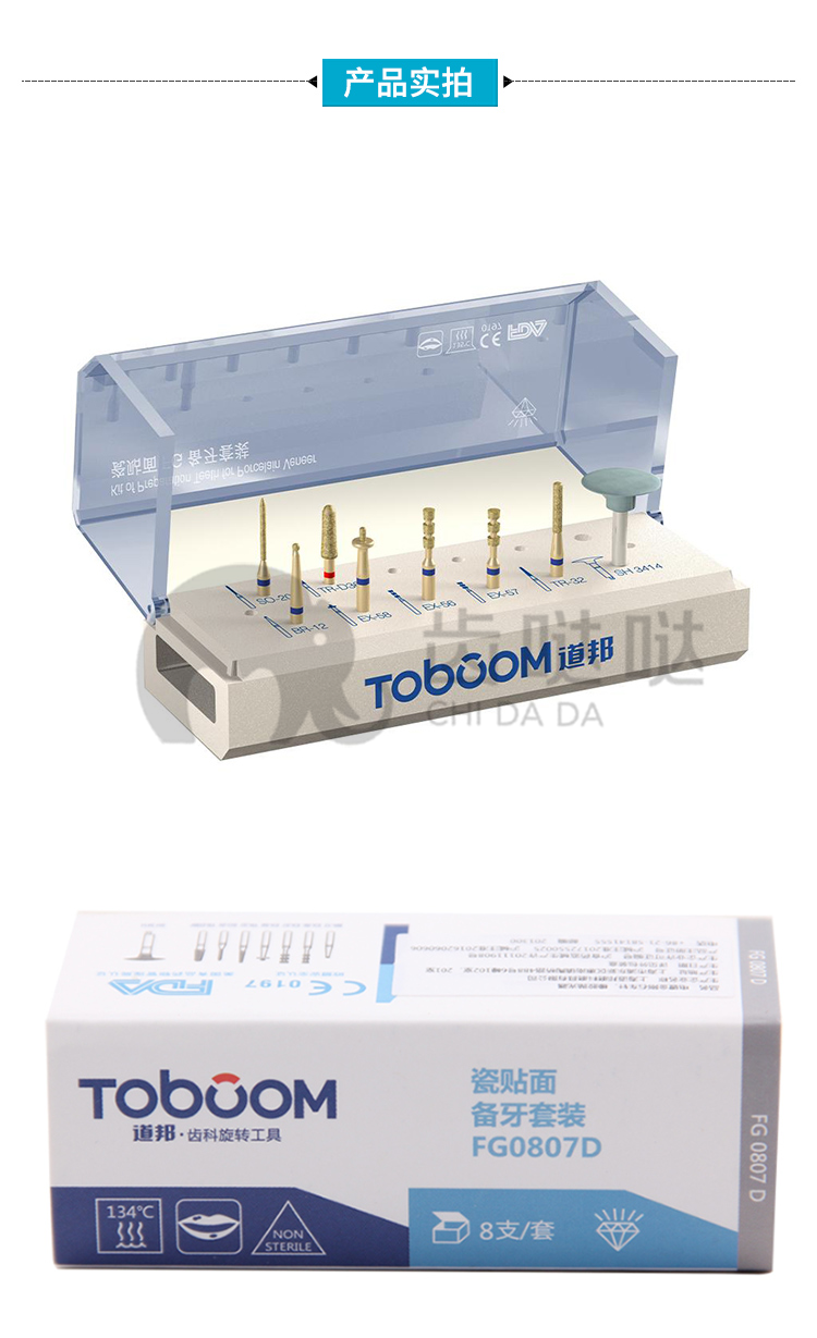 道邦 瓷贴面备牙套装(临床) 电镀金刚石车针 FG0807D 高速/低速弯机