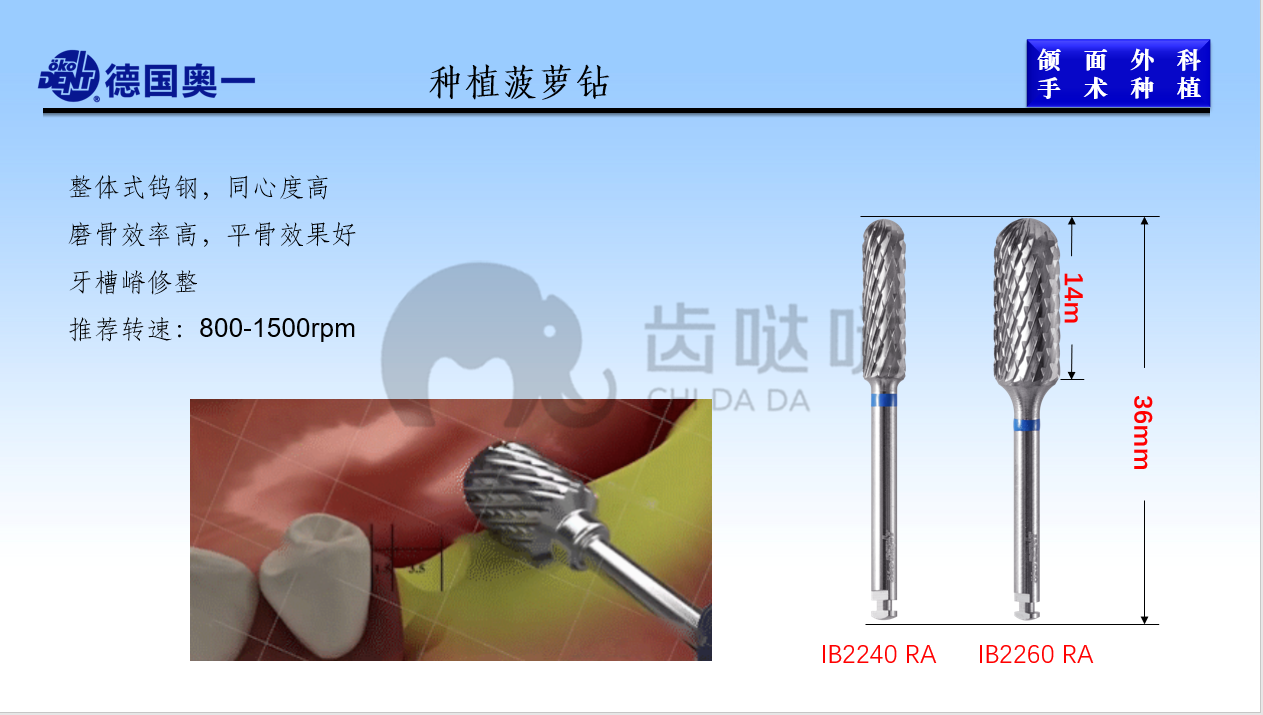 奥一 钨钢车针/骨面平整磨骨菠萝钻(圆头)1支/板