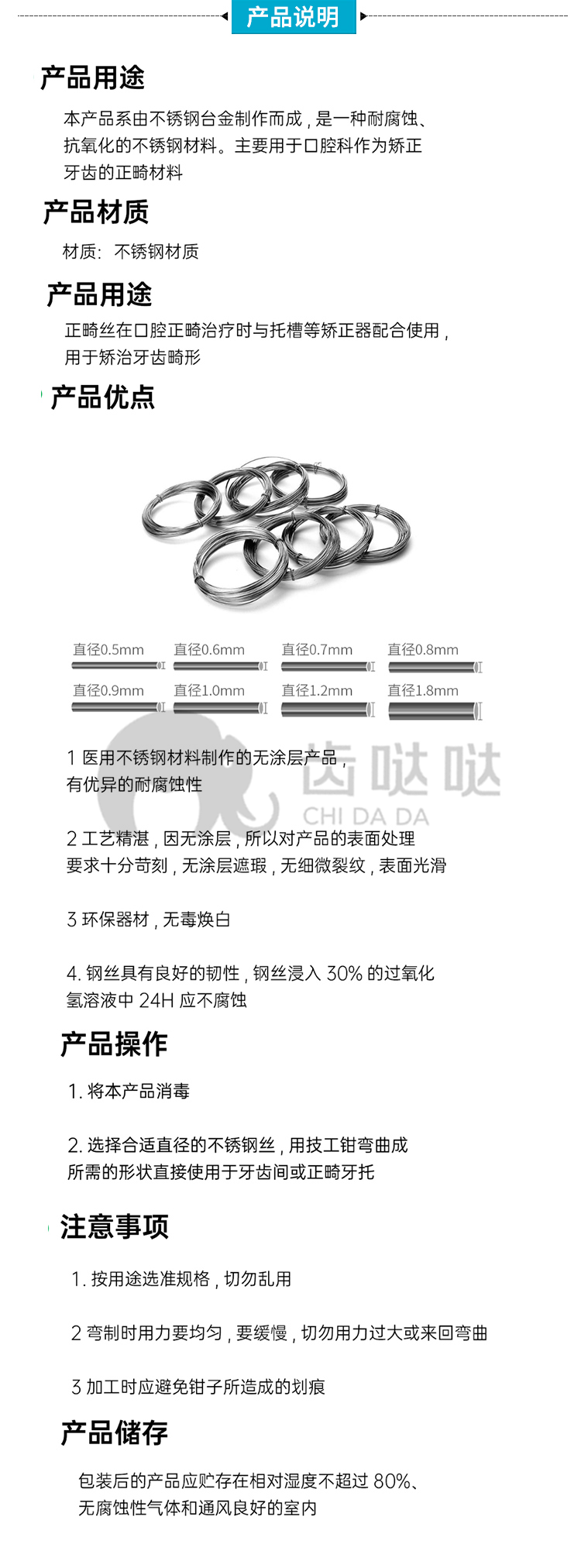 康桥 牙用不锈钢丝30G