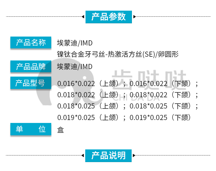 埃蒙迪 镍钛合金牙弓丝/ 卵圆形(热激活方丝)10*1/盒