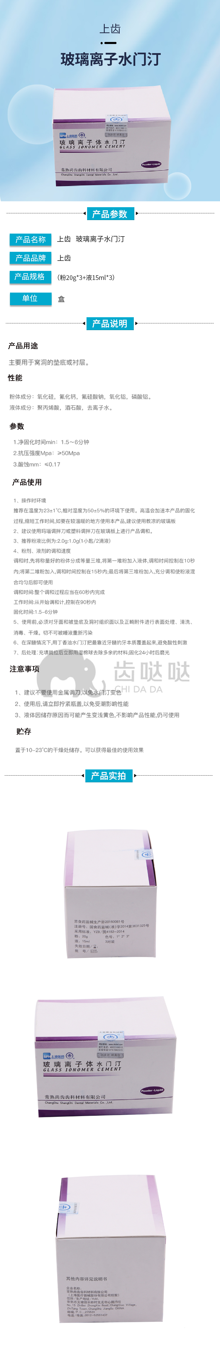 上齿 玻璃离子体水门汀(Ⅰ型)粉20g*3+液15ml*3